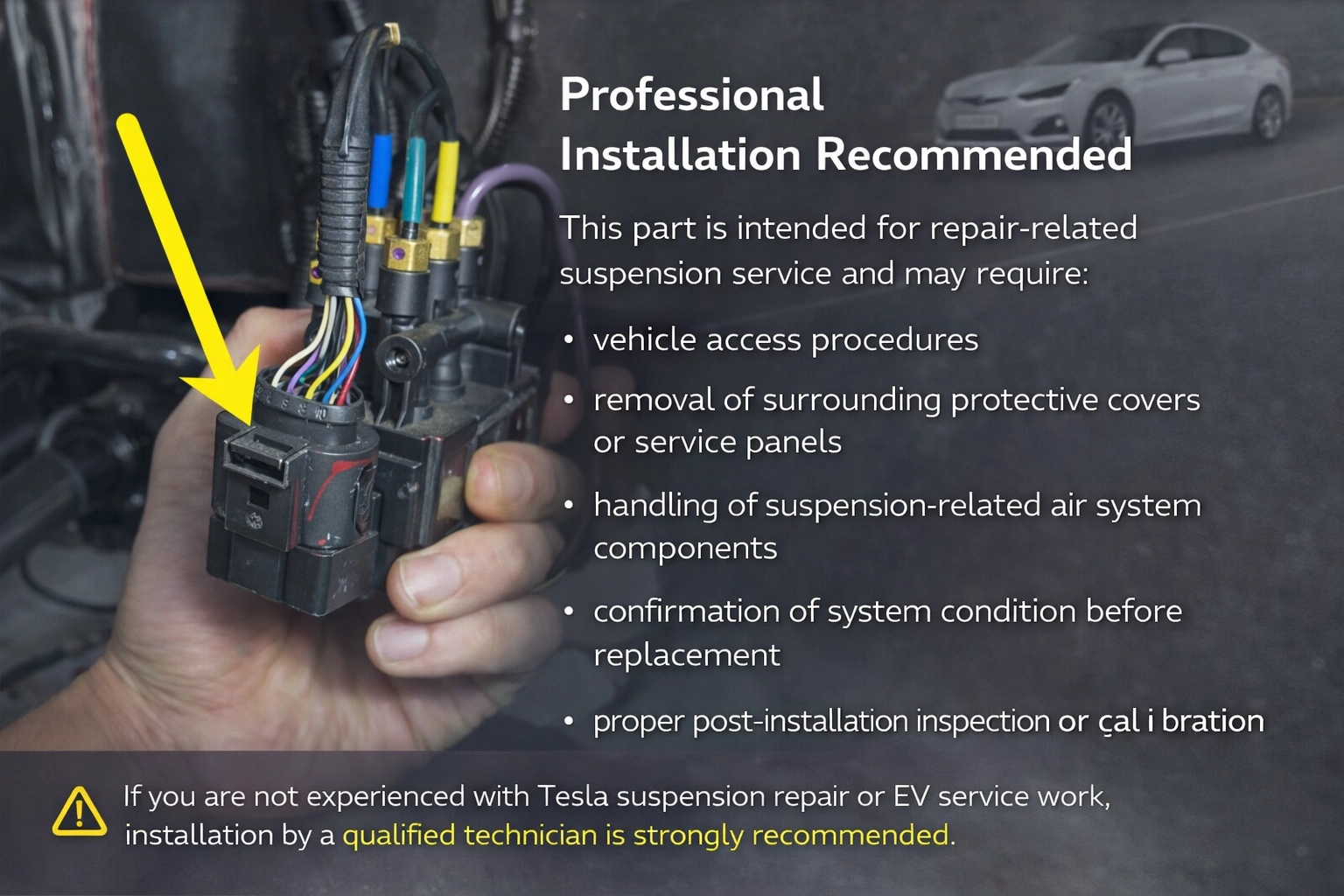 If you are not experienced with Tesla suspension repair or EV service work, installation by a qualified technician is strongly recommended.