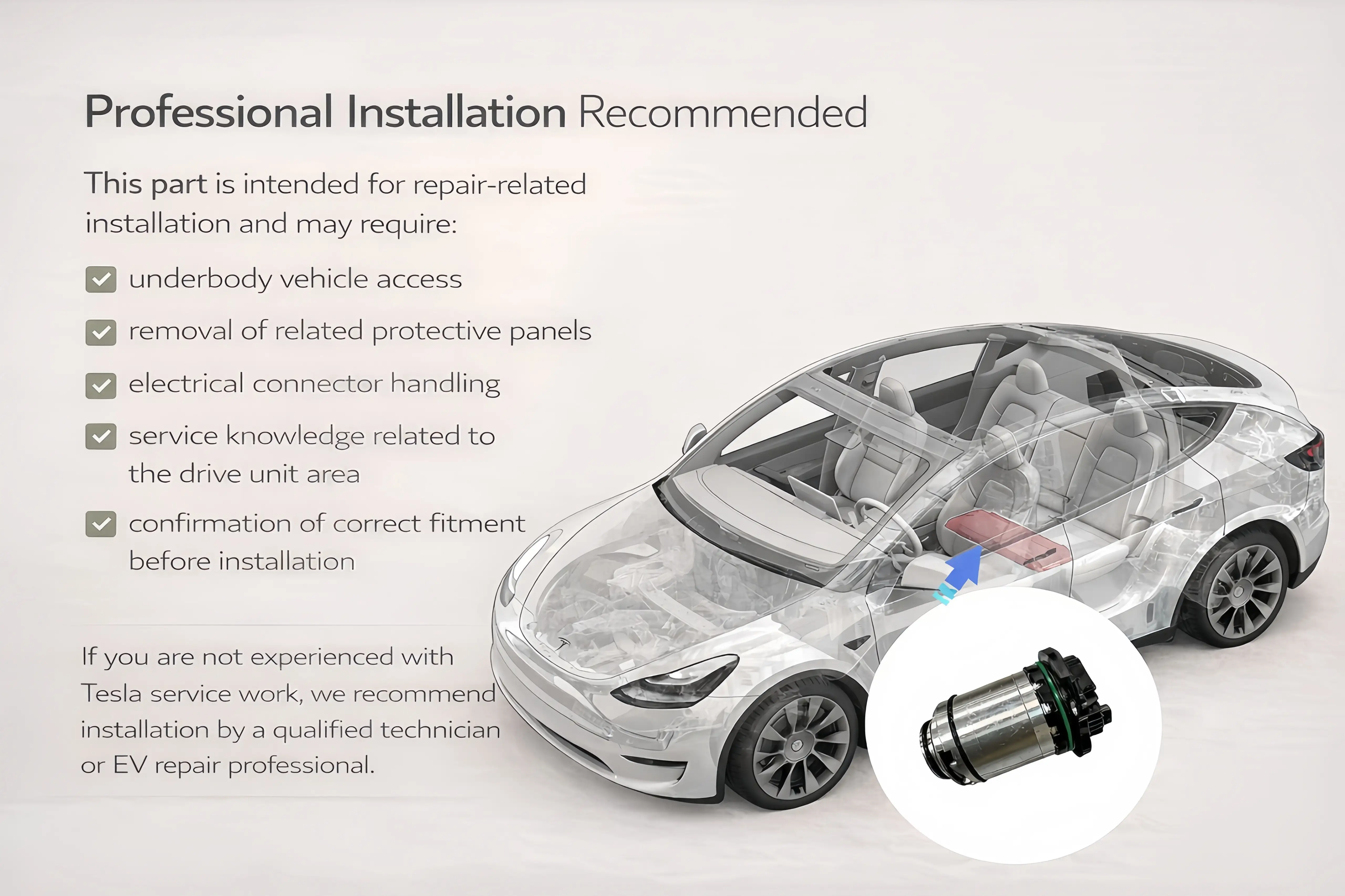 If you are not experienced with Tesla service work, we recommend installation by a qualified technician or EV repair professional.