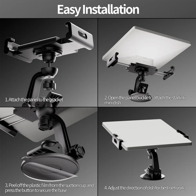 Designed for life on the move, this adjustable mount offers a stable and flexible way to secure your Starlink Mini in vehicles, RVs, or temporary setups. With a strong suction base, 360° rotation, and a flexible arm, it allows quick positioning for better signal alignment and viewing comfort. Built from durable ABS with non-slip pads, it keeps your device firmly in place without scratching surfaces. While many users search for a Starlink Mini Magnetic Mount, this suction-based solution is ideal when magnets aren’t practical, delivering a reliable hold and easy removal for everyday travel use.