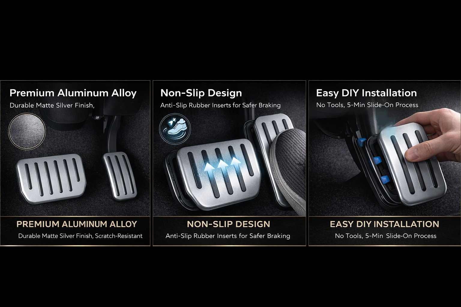 🛡️ Enhanced Safety: Features thick, anti-slip rubber strips that increase friction by 50%. Drive with confidence, even with wet or smooth-soled shoes.