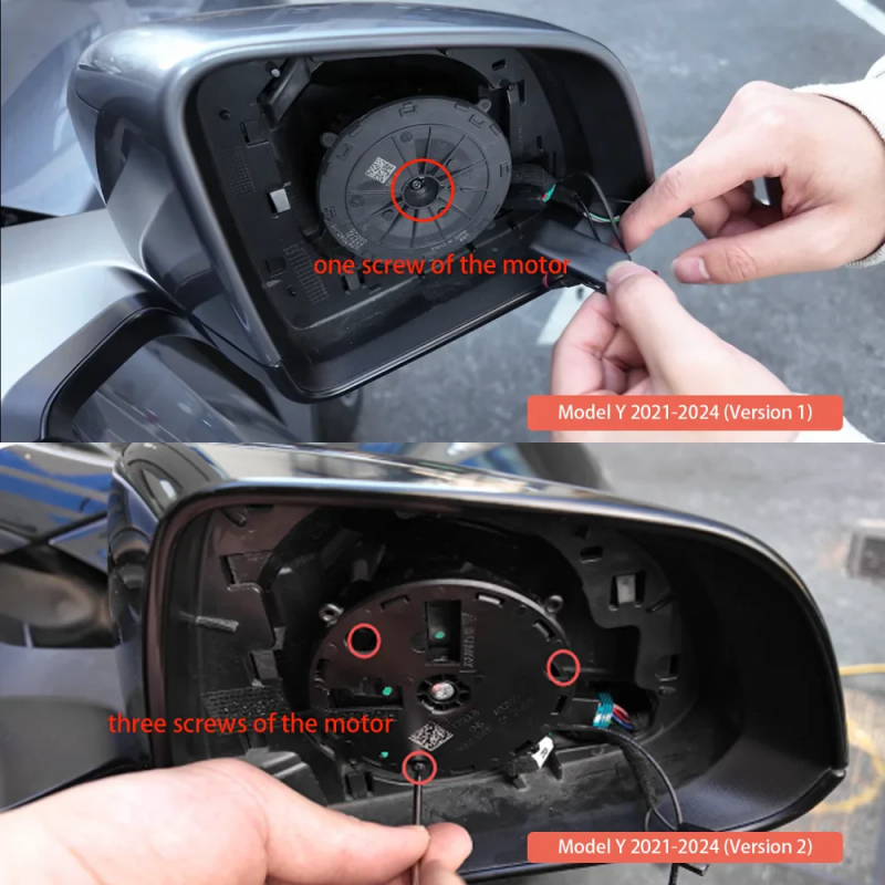There are two versions of the mirror motor for Model Y, and the number of screws differs between them:
