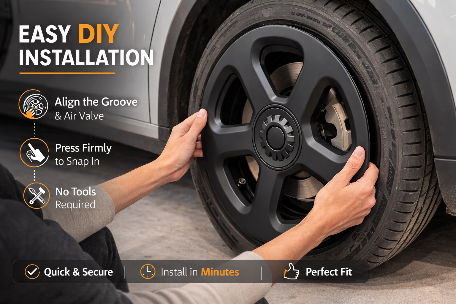 3. Check Fit – Ensure the cover is flush with the wheel and securely in place.