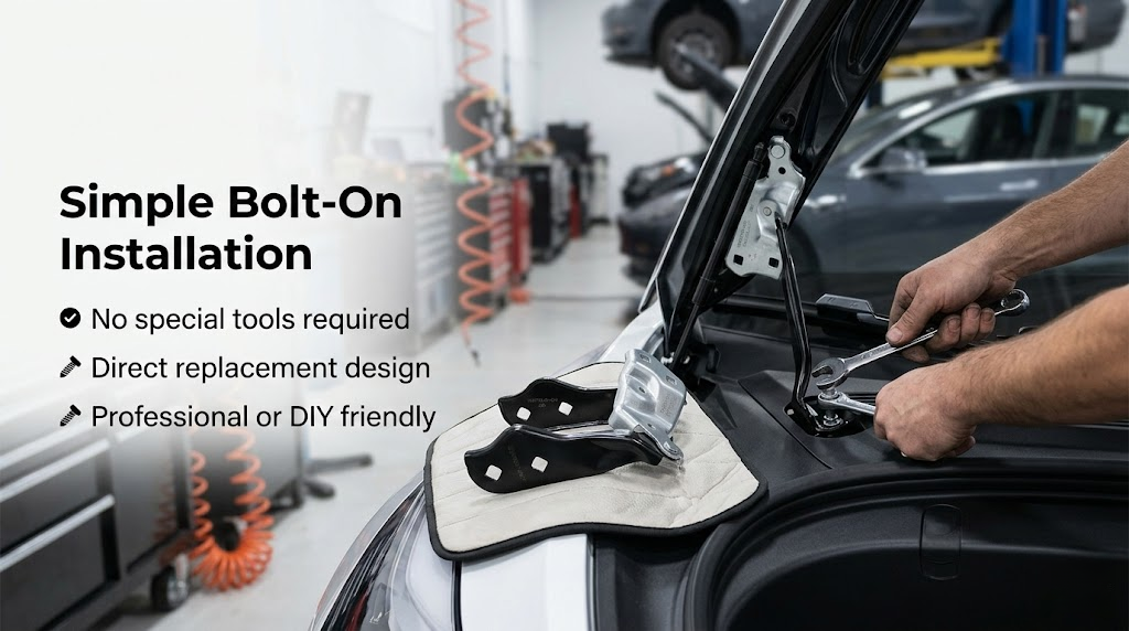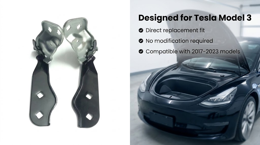 Maintain your Model 3’s hood alignment and operation with these reliable aftermarket hinges, suitable for both DIY enthusiasts and professional repair shops.